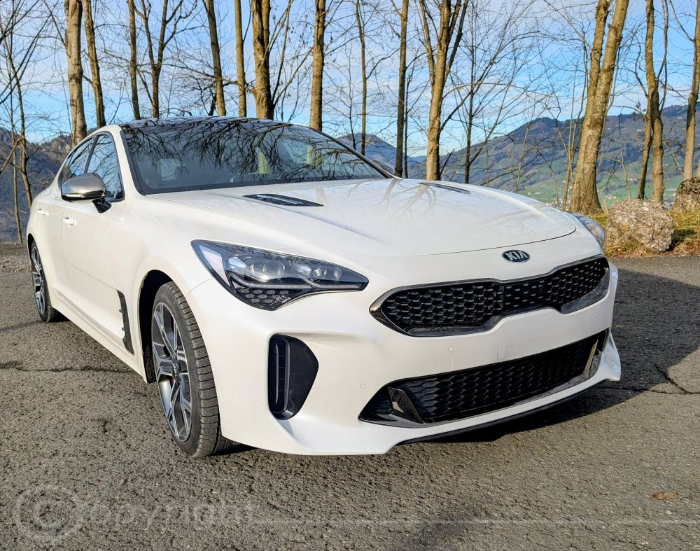 Occasion im Auftrag zu verkaufen, schöner gepflegter Stinger, 4x4, 370PS, Snow Pearl White metallic, 1. Inverk. 12.2017, km ca. 110'000km, interieur Leder schwarz, 8-fach bereift,...